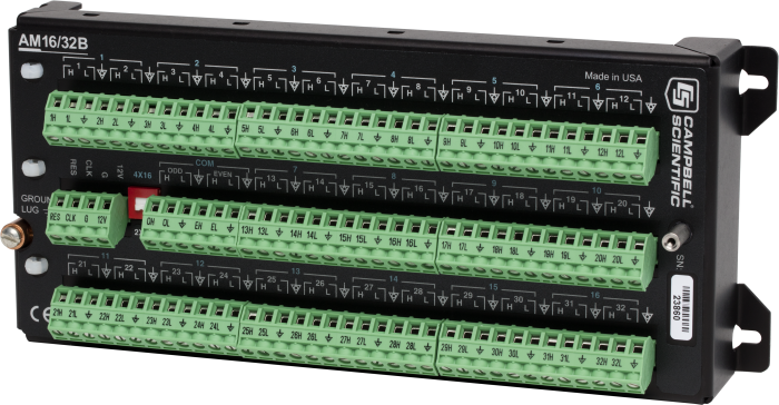 AM16 / 32B hoặc ghép 16 nhóm bốn dòng (tổng cộng 64 dòng) thông qua bốn thiết bị đầu cuối (COM) chung. Ngoài ra, cài đặt chuyển đổi thủ công cho phép AM16 / 32B ghép 32 nhóm của hai dòng (cũng có tổng cộng 64 dòng) thông qua hai đầu cuối COM. Một cáp kết nối các đầu cuối chung với đầu vào tương tự của bộ ghi dữ liệu, kênh kích thích hoặc nối đất theo yêu cầu của cảm biến. Bộ ghi dữ liệu điều khiển bộ ghép kênh bằng cách sử dụng hai cổng điều khiển hoặc một cổng điều khiển và một kênh kích thích.