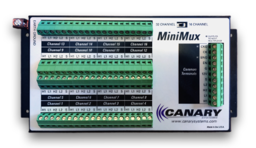 The MiniMux may be packaged directly into the Automatic Data Acquisition System (ADAS) enclosure or installed in a variety of standard enclosures. Contact Canary Systems for enclosure and cable entry options.